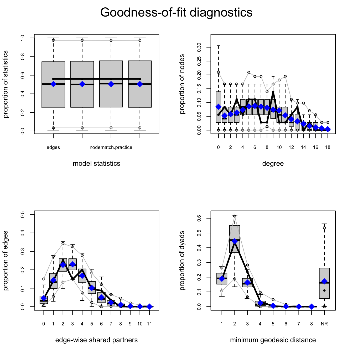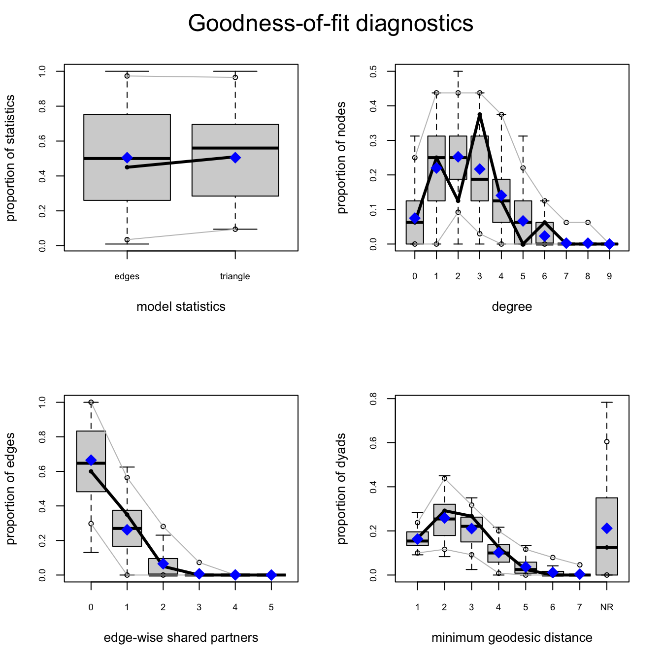 to assess goodness of fit since it was explicitly modeled via the gwesp