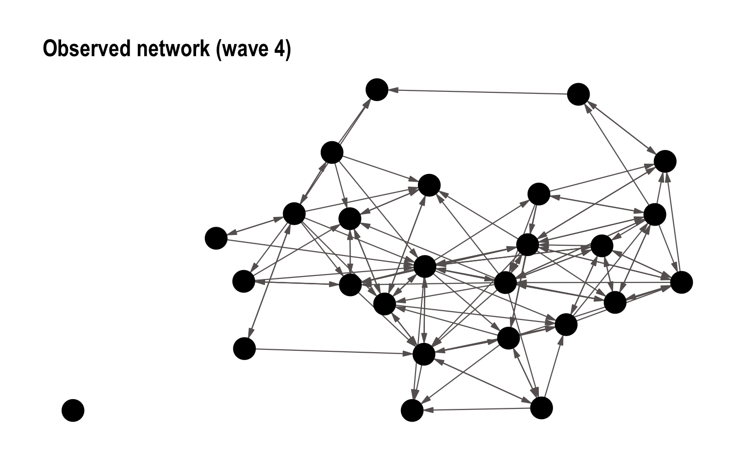 . Note that the network is longitudinal and observed over four time periods. We will here focus on the last time period. To load the wave 4 data and to visualize it: